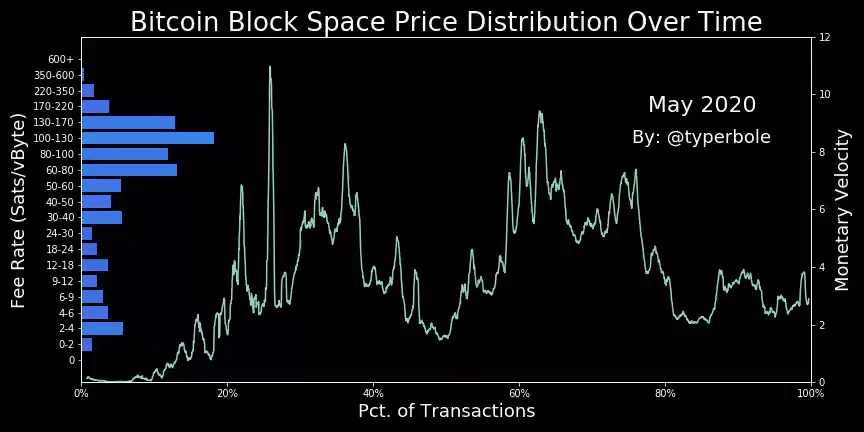 - changed the blue line from monetary velocity to transaction volume (h/t @hasufl for suggestion) to show context of block space demand