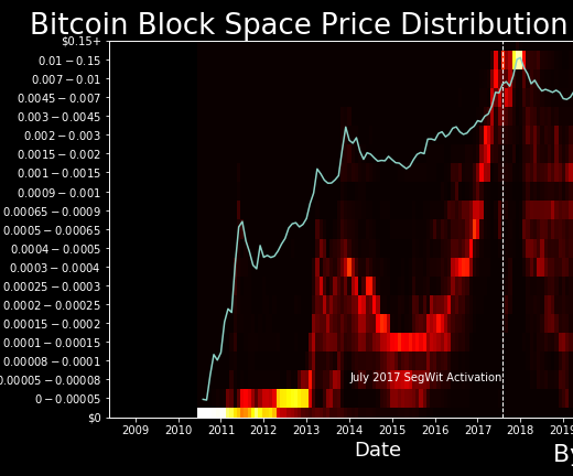 There is a nice positive relationship showing that block space price increases when demand for on-chain transactions increases. This is encouraging.